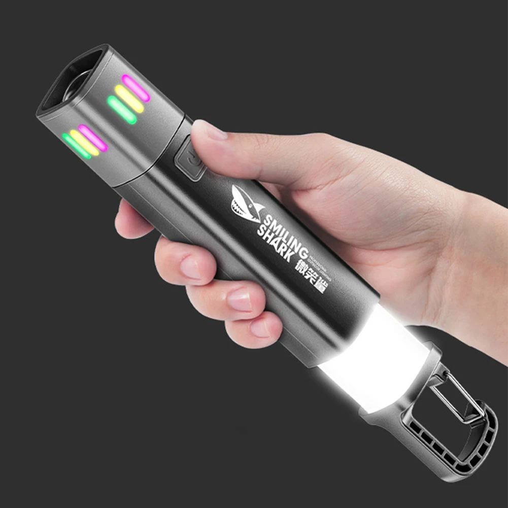 5.Fluorescent Strip Design: In zoomable flashlight mode, extendable fluorescent strips are activated, illuminating the colorful side lighting for enhanced visual effects.